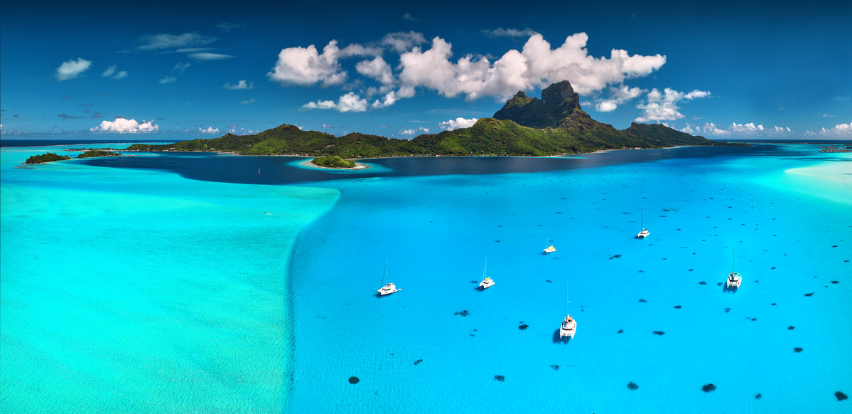 Bora Bora se trouve dans l'archipel de la Société en Polynésie française. Située au milieu de l'océan Pacifique, sa distance géographique aux continents la rend moins accessible et participe grandement à son mythe. Elle est une destination de voyage idéale si vous désirez découvrir de nouveaux paysages singuliers et inédits, notamment ses plages de sable blanc bordées de cocotiers ou le charmant village de Vaitape, cœur battant de l’île.